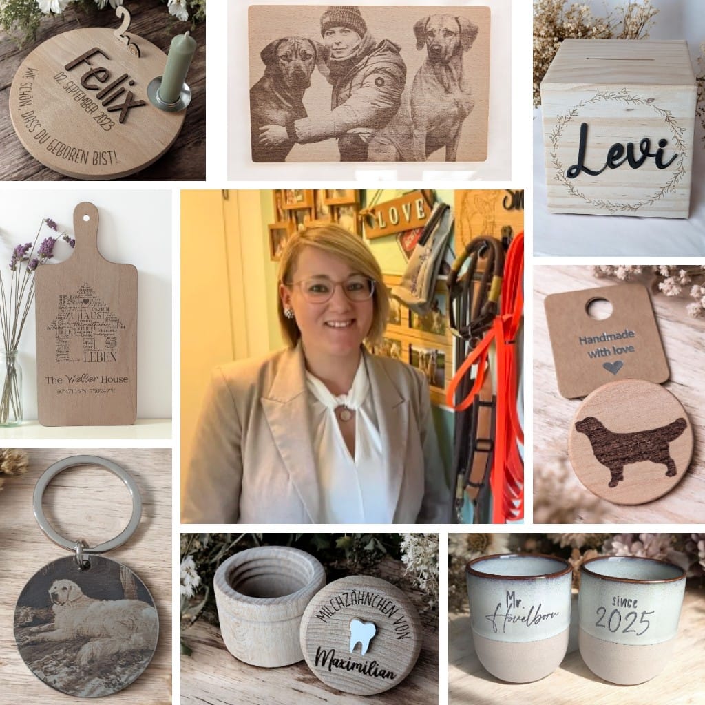 Mit viel Liebe zum Detail fertige ich handgemachte Unikate für dich, deinen Vierbeiner und die ganze Familie. Ob personalisierte Geschenke, stilvolle Accessoires oder einzigartige Erinnerungsstücke – jedes Produkt entsteht mit modernster Laser- oder Plottertechnik und einer großen Portion Herzblut. Entdecke besondere Schätze aus Holz, Edelstahl, Keramik, Schiefer und vielem mehr – handgemacht, individuell und mit Liebe gestaltet.