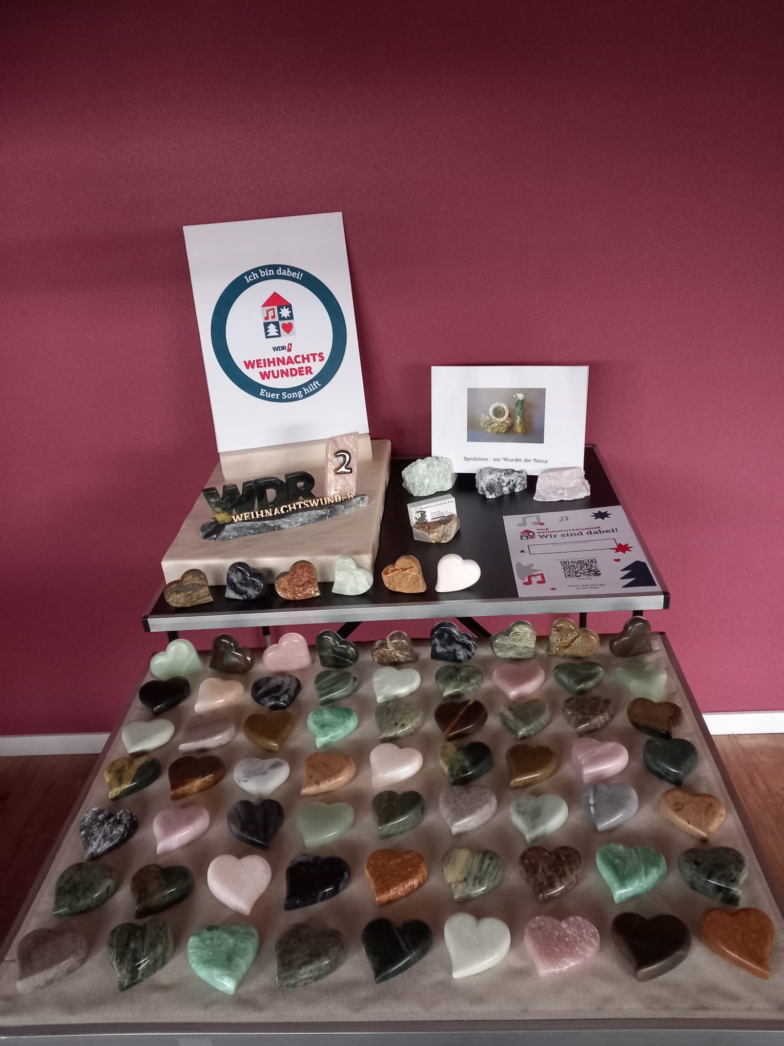 Hallo, ich heiße Beate Voigt und mein Hobby ist es, Speckstein zu bearbeiten. Rohlingen bekomme ich im Künstlerbedarf (Witten), anschließend folgt die Bearbeitung durch sägen, feilen, schleifen sowie nassschleifen und zu guter letzt lackieren. So entstehen kleine Kunsthandwerke für sämtliche Anlässe ( Geburtstag, Hochzeit usw) Zusätzlich habe ich mich dieses Jahr wieder zum WDR 2 Weihnachtswunder angemeldet Letztes Jahr war ich in Paderborn und konnte durch den Verkauf meiner Specksteinherzchen 934 € spenden.